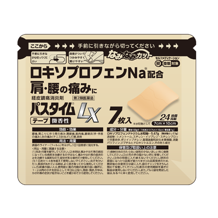 - すぐれた鎮痛消炎効果をもつロキソプロフェンナトリウム水和物を配合したテープ剤です。