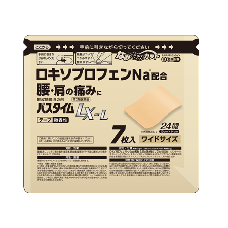 - すぐれた鎮痛消炎効果をもつロキソプロフェンナトリウム水和物を配合したテープ剤です。