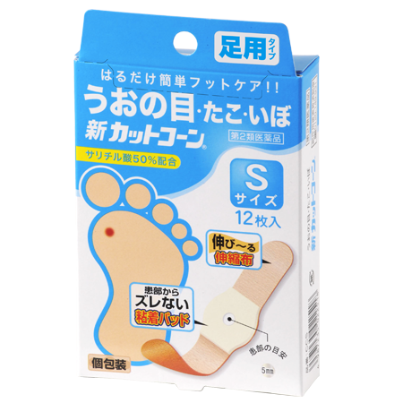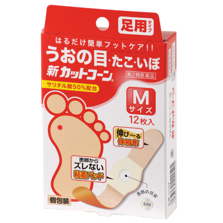 新カットコーンは、サリチル酸を50%配合した、うおの目・たこ・いぼ取り用の医薬品です。
